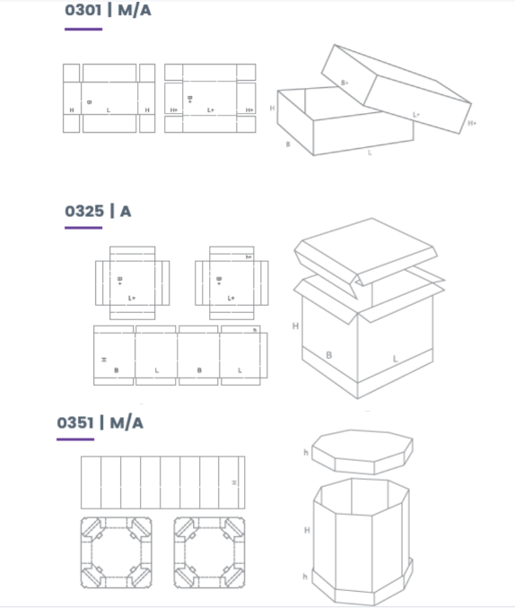 该箱型结构多由两件或多件组成,以俗称天地盖纸箱为代表,其特点是盖和箱(有时也包括箱底)分开,它的挺力和耐压强度较好。在结构设计时,首先应计算底部尺寸,然后根据底部的外部尺寸确定盖的制造尺寸。特点是箱体与箱盖分离,使用时才套接起来构成箱体,箱体正放时,箱盖可以部分或完全正确盖住箱体。这种箱型比较适合于堆叠负载强度要求较高的包装。