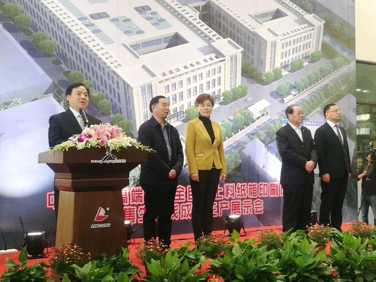 鼎龙机械成功举办“中国首条高端智能全自动上料纸箱印刷成型收集生产线成品生产展示会”。